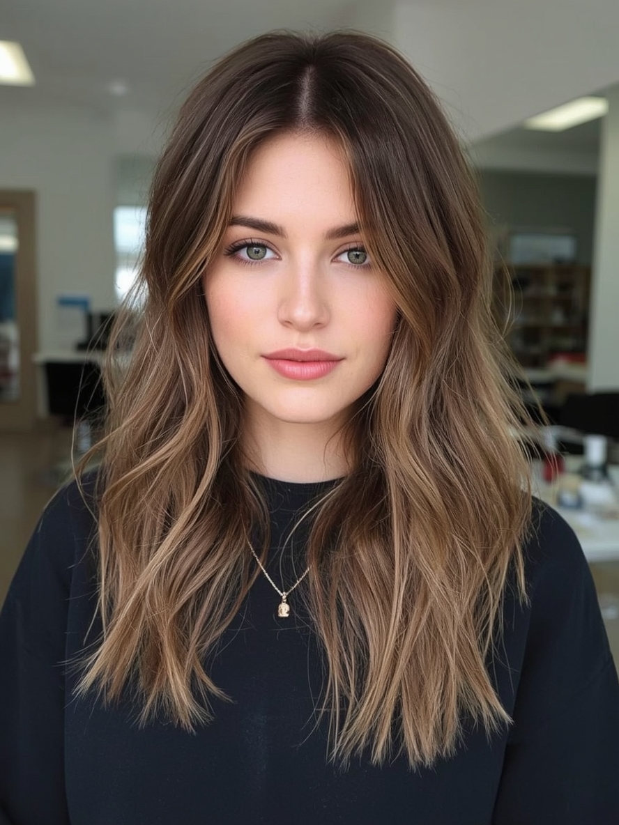 Create a stunning ombre effect with this Honey Brown Balayage, focusing the lighter tones towards the ends of your hair. This style features a seamless transition from a Honey Brown Hair base to Balayage Hair Caramel-toned ends. Ideal for those with Light Brunette Hair wanting to experiment with lighter shades without a full commitment. This is a simple and effective Brown Hair Inspo for a refreshed look. The Brunette Hair With Highlights are concentrated towards the ends, creating a sun-kissed effect that brightens the face. The subtle touch of Honey Blonde Hair adds a radiant glow, drawing from the best Blonde Hair Inspiration. The focus on the ends showcases the warmth of Honey Hair in a modern and chic way. balayage ideas for brunettes It enhances your features without overpowering them. The Brown Hair Balayage creates a beautiful contrast and dimension, leaving your hair looking vibrant and healthy.